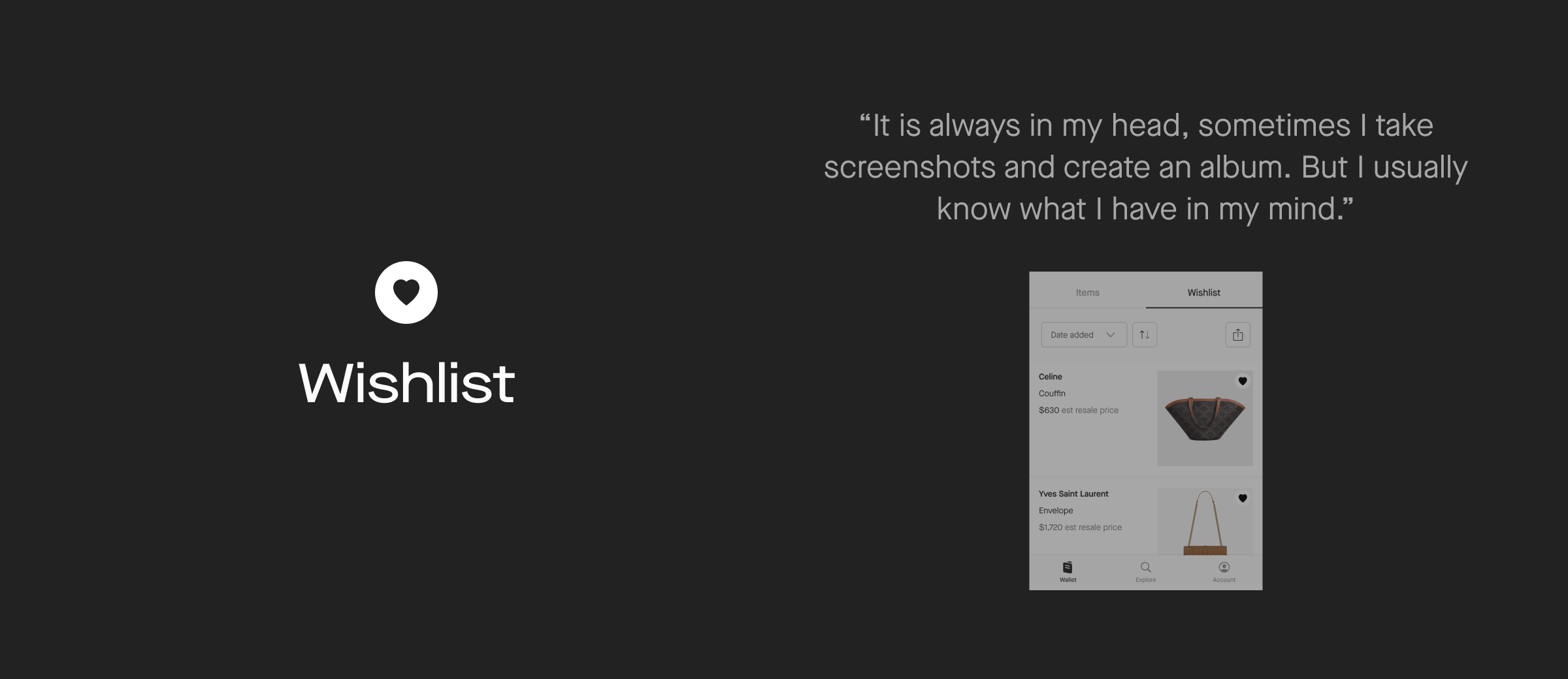 A wishlist will provide another way for users to engage with the Appreciate app, for example by tracking the prices of items they wish for, or sharing them via social media. In contrast with Wallets, users will be able to add any item—items that they wish for—to a Wishlist. Thus, we assume user engagement with Wishlists will be far greater than with Wallets.